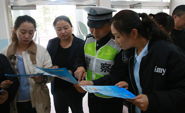 活動現(xiàn)場,交警支隊(duì)第二大隊(duì)宣傳科民警周鵬利用典型交通事故案例展板以案說法,深入剖析超速、疲勞駕駛、分心駕駛、騎車不戴頭盔等交通違法行為的危害性,詳細(xì)講解道路交通安全法規(guī)、防御性駕駛技巧和參與平安建設(shè)的重要意義。同時(shí),針對駕車上下班員工,重點(diǎn)強(qiáng)調(diào)文明禮讓行人、規(guī)范停車上下車、全程系安全帶等安全細(xì)節(jié)。呼吁駕駛?cè)藰淅巍鞍踩谝弧钡陌踩砟睿餐S護(hù)良好交通秩序。并向員工發(fā)放了“遵守交通法規(guī) 關(guān)愛生命安全”拒絕酒駕宣傳資料,號召企業(yè)員工積極參與道路交通安全,投入到平安建設(shè)中來,警企聯(lián)手共創(chuàng)平安和諧家園。宣傳活動中發(fā)放宣傳資料,并現(xiàn)場為員工進(jìn)行了解疑釋惑。