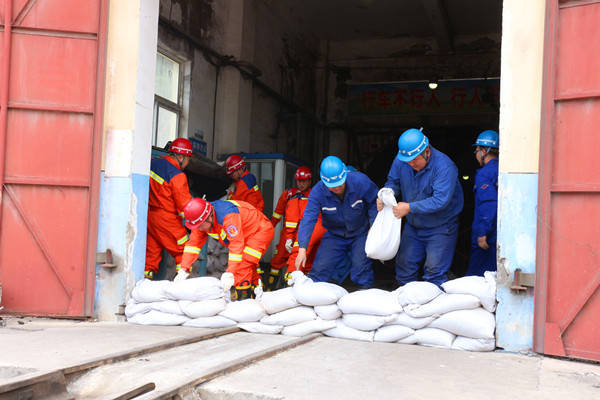 總指揮發(fā)出指令,汛期“三防”領(lǐng)導小組成員、防汛搶險小隊、救護中隊迅速到達各自集合點位,應急救援的技術(shù)、安全、醫(yī)療、保障、通訊等小組各自就位。各救援小組和防汛搶險小隊按照進一步指令立即趕赴災情地點,實施應急處置。整體搶險救援分為三個步驟同時進行,搶險小隊到達北風井工業(yè)廣場,采取堵、疏、截、排等措施對險情進行處置,防止雨水倒灌。救援小組在副井口接應井下撤離人員并進行人數(shù)清點,對身體不適人員進行詢問檢查和醫(yī)療救治。各基層區(qū)隊按照分區(qū)包片所負責的防汛區(qū)域排水系統(tǒng)進行巡查,組建區(qū)隊搶險隊做好應急搶險救援準備。