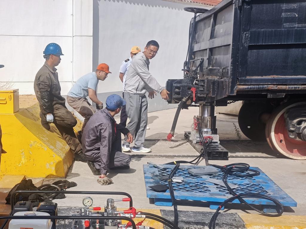 理論講解結(jié)束后,培訓(xùn)無縫切換至實(shí)操環(huán)節(jié)。在精心準(zhǔn)備的模擬脫軌場景中,技術(shù)人員親自示范液壓起復(fù)機(jī)的安裝與使用方法,從前期軌道清理、起復(fù)機(jī)定位、固定安裝,到后續(xù)機(jī)車車輛的牽引復(fù)軌,每一個(gè)步驟都進(jìn)行了規(guī)范操作和細(xì)致說明。參訓(xùn)人員在技術(shù)人員的指導(dǎo)下,分組進(jìn)行實(shí)際操作演練。大家熱情高漲、積極參與,嚴(yán)格按照操作流程進(jìn)行設(shè)備安裝調(diào)試,并就操作過程中遇到的問題與技術(shù)人員進(jìn)行深入交流。技術(shù)人員對參訓(xùn)人員的操作進(jìn)行現(xiàn)場點(diǎn)評和糾正,確保每一位參訓(xùn)人員都能熟練掌握液壓起復(fù)機(jī)的正確操作方法,從而積累寶貴經(jīng)驗(yàn)。