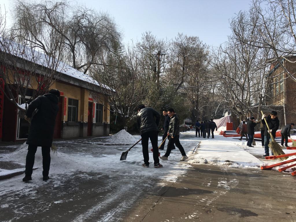 2019年銅川的第一場大雪飄飄灑灑下了一整夜,使整個(gè)城市銀裝素裹,卻也給節(jié)后的安全生產(chǎn)帶來了嚴(yán)峻考驗(yàn)。為了防止道路結(jié)冰,保障廠區(qū)生產(chǎn)安全有序,機(jī)電分公司立即行動(dòng),組織干部職工不顧嚴(yán)寒,清除積雪,為各項(xiàng)工作完美開工提供了有力保障。