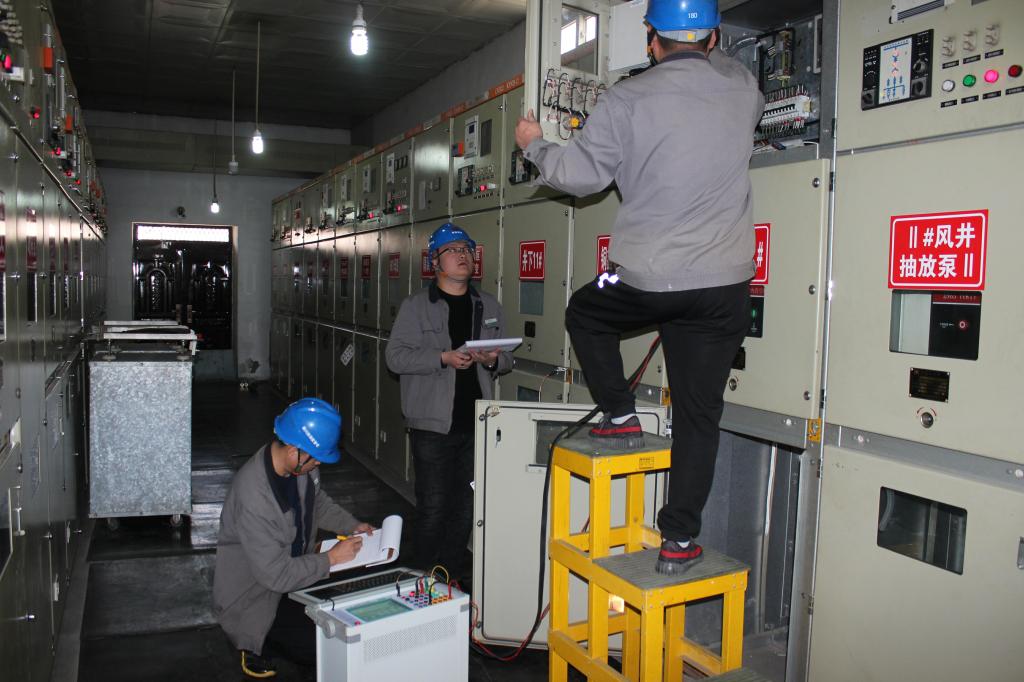 在春檢現(xiàn)場,工作負責(zé)人組織召開班前會,交代危險點,布置安全措施,宣貫安全紅線,作業(yè)人員嚴格按照規(guī)程標準要求進行檢修、消缺、試驗、清理,不遺漏一臺設(shè)備,不遺漏一條缺陷,不遺漏一項試驗,不遺漏一個疑點,做到“應(yīng)修必修,修必修好”,保證“檢修一處,放心一處”,通過30天的作業(yè)檢修,圓滿完成北區(qū)三座35KV及一座10KV變電站的春季防雷電及電氣預(yù)防性試驗工作,共檢測試驗變壓器13臺、高壓開關(guān)柜綜自保護104臺、避雷器151組、絕緣靴81.5雙、絕緣手套73.5雙、令克棒16根、高壓驗電器48支、三相短路接地棒8支、三相接地線28組。