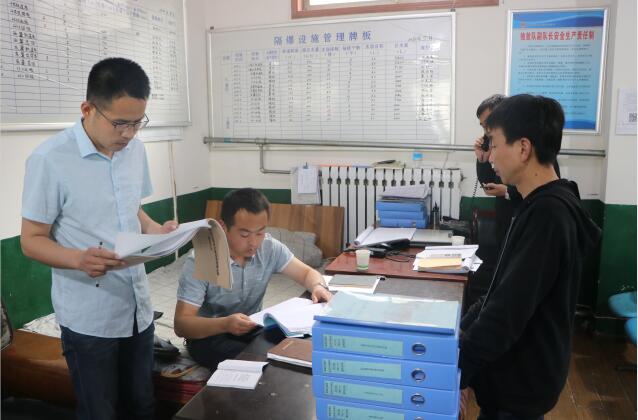 隨后,檢查組成員按專業(yè)分組分工,分別查看了安全分級管控、安全培訓、“一通三防”、地測防治水、應急預案及井下作業(yè)施工圖紙等地面基礎資料。