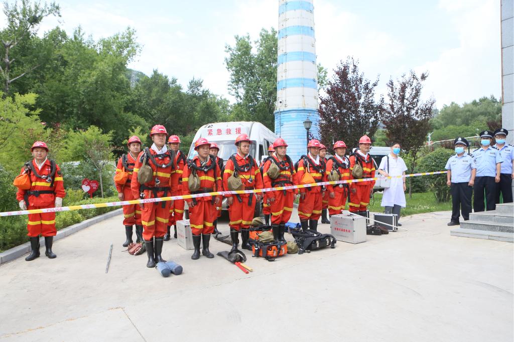 222回順掘進(jìn)巷道、950回風(fēng)巷及2#風(fēng)井內(nèi)所有人員在跟班隊(duì)長(zhǎng)帶領(lǐng)下按照避災(zāi)路線迅速撤至950避險(xiǎn)硐室及大皮帶巷等安全區(qū)。搶險(xiǎn)救災(zāi)指揮部立即成立,專(zhuān)業(yè)技術(shù)組、搶險(xiǎn)救災(zāi)組、醫(yī)療救治組、治安保衛(wèi)組、后勤保障組、善后處理組相應(yīng)成立,分領(lǐng)任務(wù),井下現(xiàn)場(chǎng)指揮部成立,由井下跟班礦領(lǐng)導(dǎo)擔(dān)任井下總指揮。各人分工明確,各組任務(wù)下達(dá),救援工作順利展開(kāi)。救護(hù)隊(duì)兩個(gè)小隊(duì)整裝待發(fā),隨時(shí)可入井展開(kāi)搶救工作。總指揮立刻命令,立即入井進(jìn)行災(zāi)區(qū)探查檢測(cè)受災(zāi)地點(diǎn)受災(zāi)人數(shù)、危險(xiǎn)程度、影響范圍、現(xiàn)狀和趨勢(shì)、事故性質(zhì),嚴(yán)重程度等情況。在總指揮下達(dá)各項(xiàng)命令的同時(shí),馬不停蹄展開(kāi)救援工作,適時(shí)研究制定恢復(fù)工作面通風(fēng)方案。井下匯報(bào)了救災(zāi)方案實(shí)施完畢,事故現(xiàn)場(chǎng)得到控制,井下人員已經(jīng)安全撤離,巷道損壞程度有效確認(rèn),實(shí)施灑水降溫,救護(hù)隊(duì)員觀測(cè)各項(xiàng)氣體濃度是否正常,確定無(wú)異常,向總指揮報(bào)告,15人已全部撤到安全地帶,無(wú)人員掉隊(duì)、受傷??傊笓]命令,繼續(xù)認(rèn)真排查。同時(shí),總指揮命令開(kāi)展后續(xù)救災(zāi)工作,一定要注意安全,避免次生事故發(fā)生,演練結(jié)束。