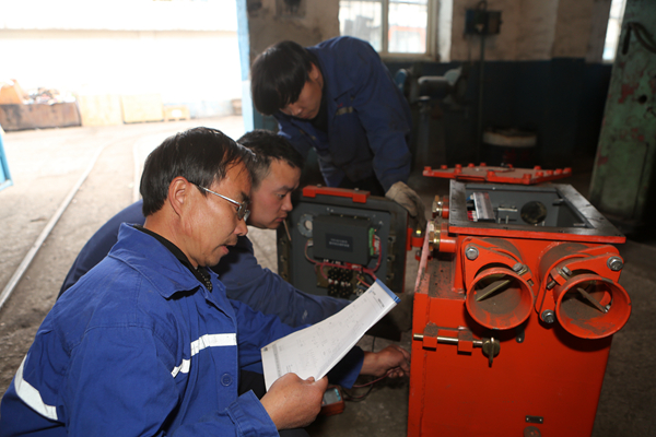“在工作中發(fā)現(xiàn)失爆設(shè)備要及時處理時,要密切注意現(xiàn)場瓦斯?jié)舛?,嚴格?zhí)行工作票制度、停送電作業(yè)制度,保護好設(shè)備的隔爆面等檢查維修機電設(shè)備的安全要領(lǐng)和注意事項,這樣才能確保自身安全、保證設(shè)備防爆性能、快速查明原因“對癥下藥”,必須在安全的前提下保證隱患問題快速排除?!痹摰V綜采隊維修電工班長高樂與工友們分享“練兵”心得。