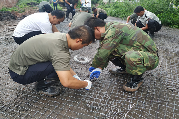 到達搶險地點后,考慮到該河段的特殊性,應急救援小組結合現(xiàn)場災情實際迅速調(diào)整搶險應急預案,扎鐵網(wǎng),投放石塊,站在湍急的河水處,感受著刺骨洶涌的浪濤,不一會,他們渾身濕透,手磨出了水泡,但大家無所畏懼,繼續(xù)前行。期間,該礦領導干部與職工始終戰(zhàn)斗在搶險第一線。