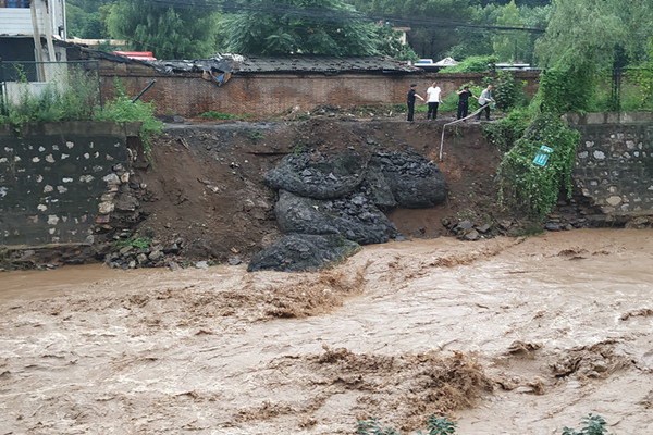 “喂,寨子溝醫(yī)院橋頭西北方向河堤垮塌,垮塌長度約20米。嚴重危害著周邊居民生命安全……”
