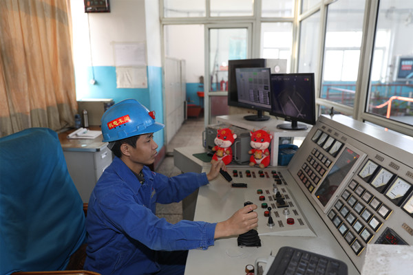 主扇機房司機楊飛鵬、主斜井司機孫楊、副井提升司機原艷成和洗選系統(tǒng)集控員黃迎春,他們?nèi)粘9ぷ飨嗤氖嵌家鎸ρ刍潄y的按鈕和控制閥。今年更大的一個共同點,春節(jié)第一次留守值崗了。