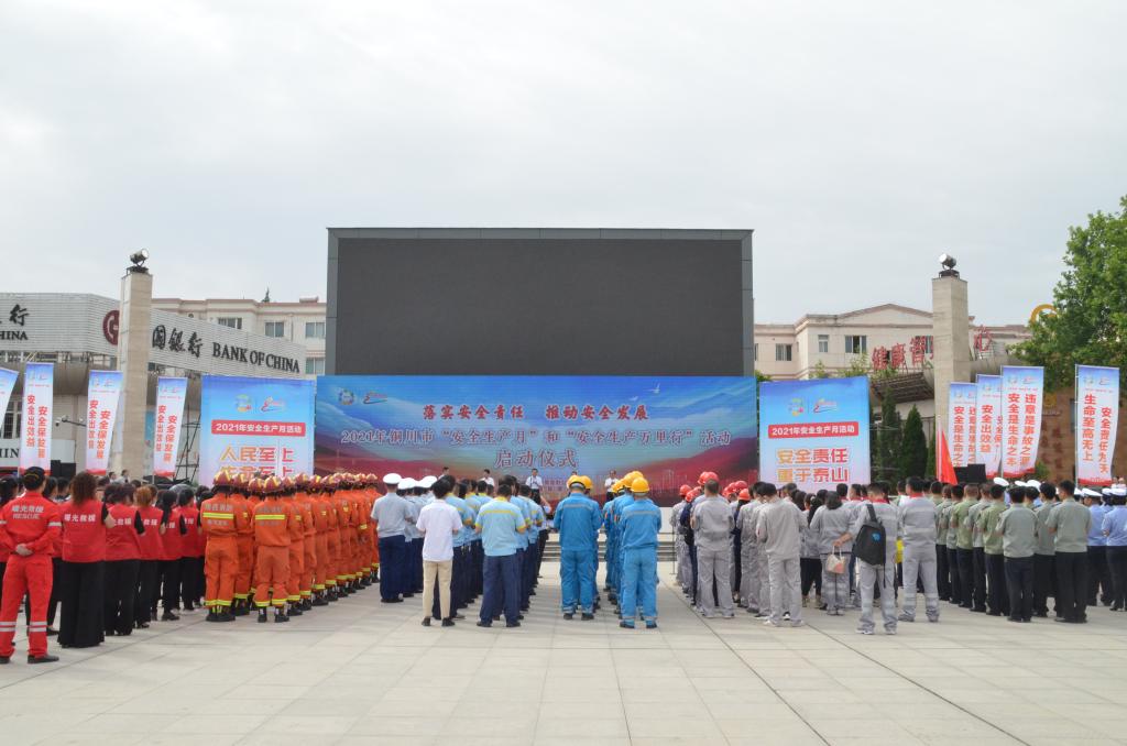 6月3日上午,2021年銅川市“安全生產(chǎn)月”和“安全生產(chǎn)萬里行”活動在銅川新區(qū)陽光廣場舉行,公司救護(hù)大隊(duì)作為礦山應(yīng)急救援隊(duì)組織20人參加活動,向群眾宣傳安全知識和急救技能。