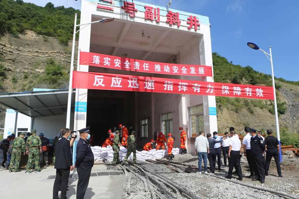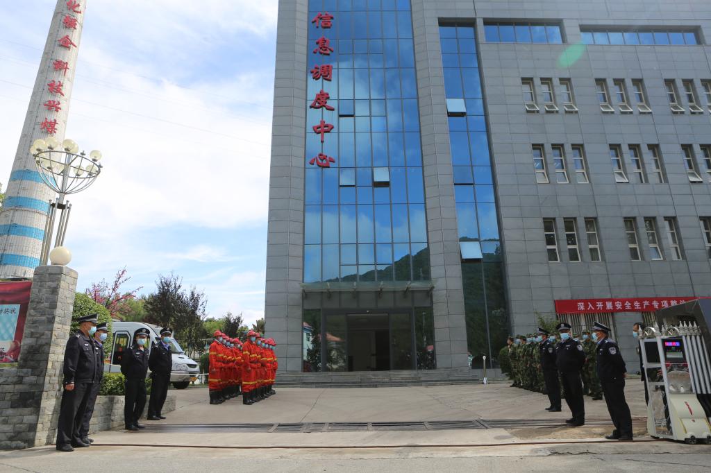 “報告,現在礦區(qū)降雨量不斷增大,局部地區(qū)地50毫米以上,工業(yè)廣場2#副斜井井口有被淹的危險……” “立即啟動《雨季“三防”應急預案》,迅速通知應急救援指揮部所有成員緊急集合待命。通知井下所有作業(yè)人員緊急有序撤離作業(yè)地點,并沿避災路線升井,安排人車接送?!?9月2日,一場防洪搶險應急演練在下石節(jié)煤礦信息化數字大樓四樓會議室進行。