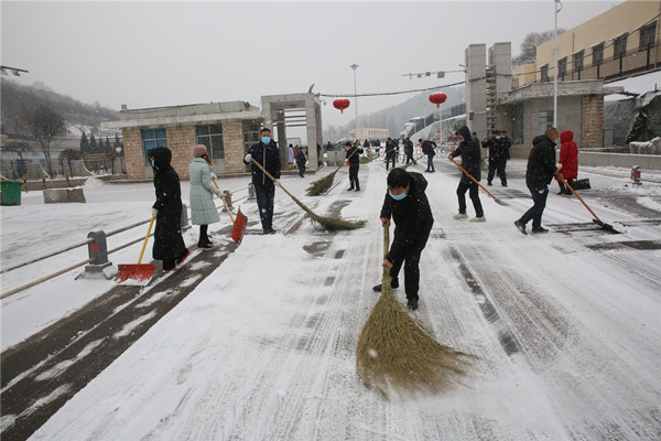連日的大雪給礦井包裹成一層銀霜,冰雪世界雖別有一番風(fēng)情,但給礦區(qū)職工和車輛出行帶來(lái)了安全隱患,1月21日一大早,柴家溝井發(fā)起了全民掃雪總動(dòng)員,開展了一次掃雪大行動(dòng)。