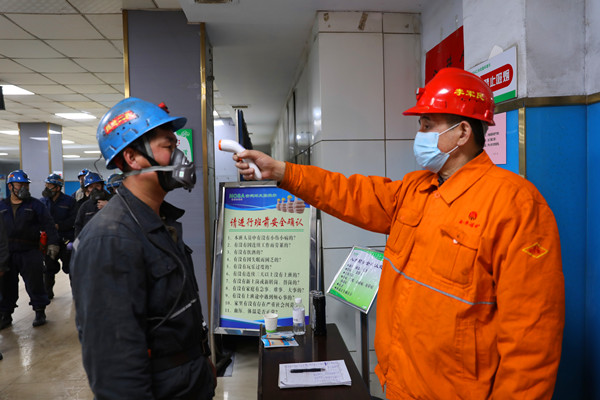 3月10日下午,玉華煤礦侯罐大廳,即將入井的干部職工在安全確認(rèn)門前經(jīng)過(guò)嚴(yán)格的身體狀況報(bào)備、體溫測(cè)量、安全檢身,佩戴口罩,保持安全距離,分5批次乘坐罐籠進(jìn)入井下工作崗位。