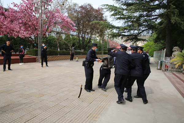 上午9時(shí),一名持刀“暴徒”欲強(qiáng)行突破該中心大門(mén)進(jìn)入辦公樓內(nèi)部實(shí)施破壞,被安保人員發(fā)現(xiàn)后立即阻止并向轄區(qū)派出所報(bào)警。接到報(bào)警,轄區(qū)派出所民警迅速出警,前往該中心辦公樓大門(mén)進(jìn)行支援。數(shù)分鐘后,轄區(qū)派出所民警全副武裝趕赴現(xiàn)場(chǎng)和安保人員合力將持刀“暴徒”擒獲。 演練歷時(shí)1小時(shí)左右,共出動(dòng)車(chē)輛1輛,參演人數(shù)10余人,各小組分工明確、行動(dòng)迅速、配合默契、處置得當(dāng),達(dá)到了演練預(yù)期效果。