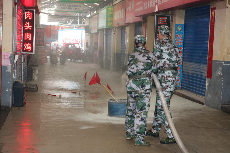 隨后,市場(chǎng)內(nèi)部響起了一陣緊急的警報(bào)聲,發(fā)現(xiàn)了電器著火,市場(chǎng)安全負(fù)責(zé)人進(jìn)行了水槍打靶演練,有序地連接水槍水帶,對(duì)準(zhǔn)火點(diǎn)滅火。正常演練秩序良好,反應(yīng)迅速。