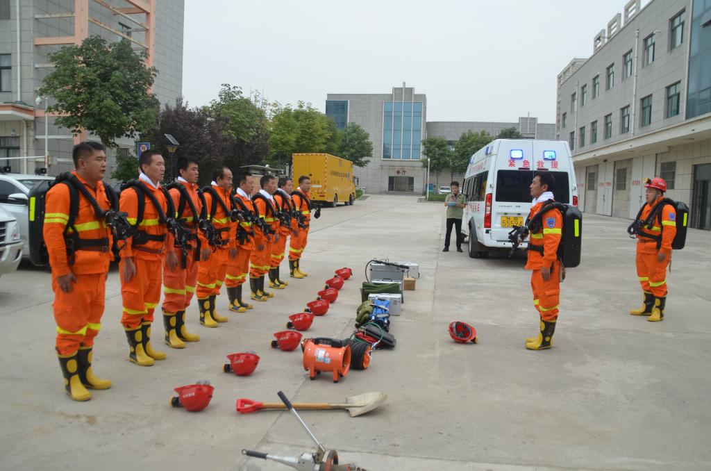 “喂!喂!國家礦山應(yīng)急救援銅川隊嗎?我單位實施地下管道清淤,發(fā)生井下窒息,救助未果,情況不明,請求救援,請求救援!”隨著急促地警鈴聲,值備班指戰(zhàn)員攜帶裝備迅速出動。