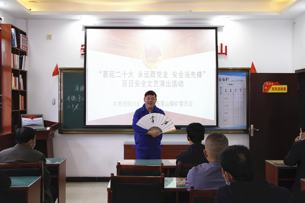 “行車規(guī)章不能少,安全運輸才能保;雷管炸藥分兩家,兩者見面要爆發(fā)……”近日,在該礦綜采隊學(xué)習(xí)室,單口相聲《安全身邊人》讓大家的掌聲不斷,贊不絕口。這是礦團委組織青年志愿者開展文藝演出下區(qū)隊活動。