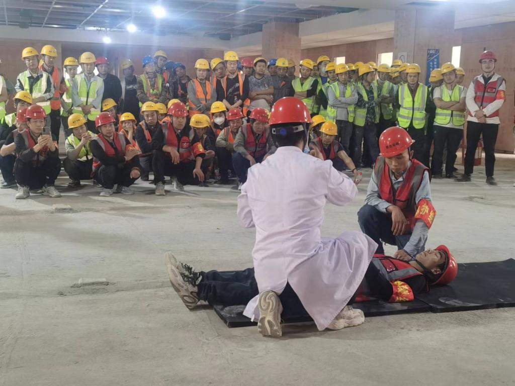 活動現(xiàn)場,該公司特邀鳳城醫(yī)院骨科專家針對高空墜落傷、呼吸心跳停止、氣道異物梗阻等急救方面知識進行了詳細的講解。對如何判斷意識和生命體征、清理口腔分泌物、開放氣道、胸外按壓等一系列心肺復蘇動作操作要領進行演示,并對按壓的正確方法、部位、姿勢、按壓深度等一些難以掌握的動作難點反復教學。同時針對身體各部位摔傷骨折的固定、包扎、搬運等動作進行耐心指導?,F(xiàn)場全體施工人員認真聆聽,踴躍參與嘗試,專家熱心解惑,學習熱情空前高漲。