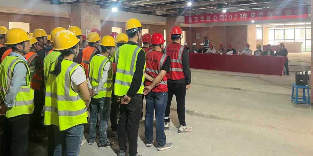 為進一步提升公司事故災難應對能力,科學有效組織應急救援處置工作。4月20日下午,華峰公司在西安航天城陜西煤基特種燃料研究院辦公樓裝飾裝修項目施工現(xiàn)場組織開展安全應急救援演練。甲方代表、監(jiān)理代表、華峰公司領導、相關部室、項目管理人員和施工人員共計100余人參與本次演練。