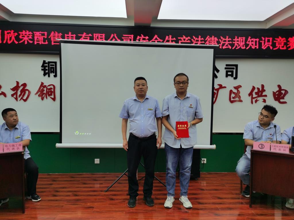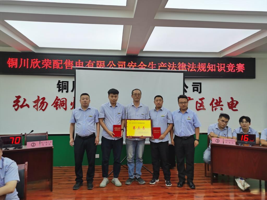 此次競賽包括必答題、搶答題和風險題三個環(huán)節(jié),緊扣安全生產(chǎn)法律法規(guī)、電力行業(yè)安全生產(chǎn)基礎(chǔ)知識等內(nèi)容。最終,經(jīng)過激烈角逐,所屬電力調(diào)度中心代表隊取得冠軍,市場營銷部取得二等獎、電力施工部代表隊獲得三等獎。同時,來自電力施工部的胥哲東同志取得了“最佳個人”獎。在熱烈的掌聲中,銅川礦區(qū)工會和公司領(lǐng)導(dǎo)分別向現(xiàn)場獲獎代表隊頒發(fā)了證書,以資鼓勵。