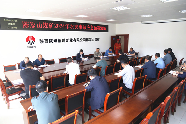 “我是綜掘三隊(duì)跟班隊(duì)長(zhǎng)王銀川,4082反風(fēng)道橫川掘進(jìn)工作面56m(迎頭)頂板裂隙出水,且水量較大……該礦調(diào)度室接到報(bào)警電話。隨著總指揮的一聲令下,陳家山煤礦2024年礦井水災(zāi)事故應(yīng)急預(yù)案演練正式拉開(kāi)帷幕。