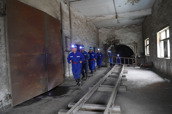 上午10時(shí)整,演練正式開始。此次汛期“三防”演練的情景設(shè)定為,在接到市氣象部門發(fā)布的暴雨橙色預(yù)警信息后,雨勢(shì)不斷加劇,北風(fēng)井工業(yè)廣場(chǎng)積聚水位逐漸抬高,存在大量積水由北斜井灌入井下的風(fēng)險(xiǎn),嚴(yán)重威脅井下作業(yè)人員的安全。信息調(diào)度指揮中心嚴(yán)格執(zhí)行緊急情況停產(chǎn)撤人制度,迅速由帶班礦領(lǐng)導(dǎo)組織井下作業(yè)人員按照避災(zāi)路線緊急撤離。