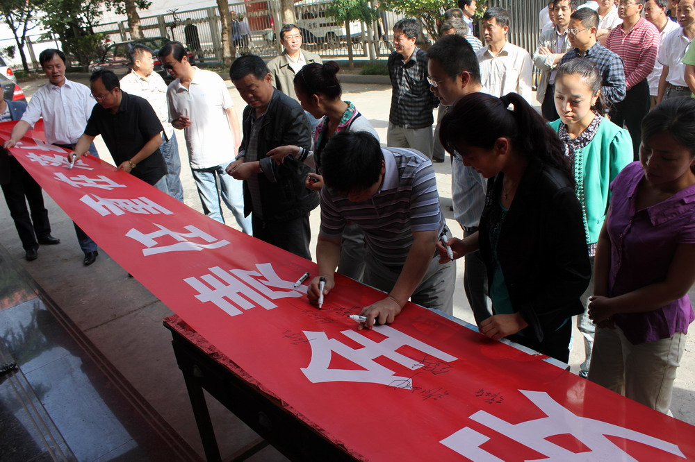 在6月1日的“安全生產(chǎn)月”活動(dòng)啟動(dòng)儀式上,公司黨政領(lǐng)導(dǎo)號(hào)召公司廣大職工加強(qiáng)安全知識(shí)學(xué)習(xí),增強(qiáng)自我保安意識(shí),自覺(jué)遵章守紀(jì);要求各級(jí)組織加強(qiáng)安全管理,落實(shí)主體責(zé)任,積極投入到“安全生產(chǎn)月”活動(dòng)中。啟動(dòng)令發(fā)布后,公司黨政領(lǐng)導(dǎo)與全體干部職工,一起在寫(xiě)有“安全責(zé)任,重在落實(shí)”的條幅上鄭重簽名,與安全簽約。