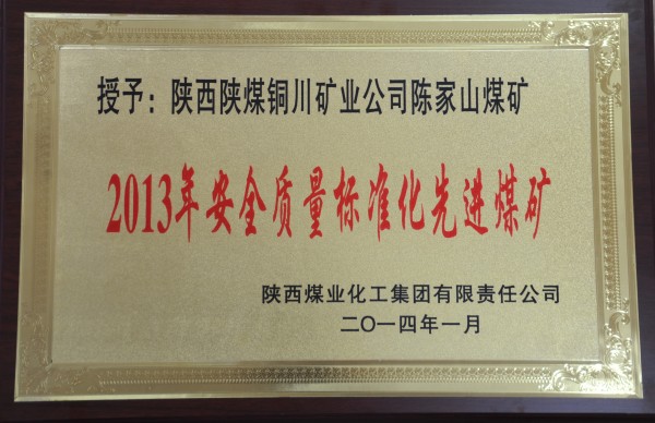 近日,在陜煤化集團(tuán)公司召開(kāi)的2014年安全工作會(huì)議上,陳家山礦榮獲集團(tuán)公司2013年安全質(zhì)量標(biāo)準(zhǔn)化先進(jìn)煤礦殊榮。