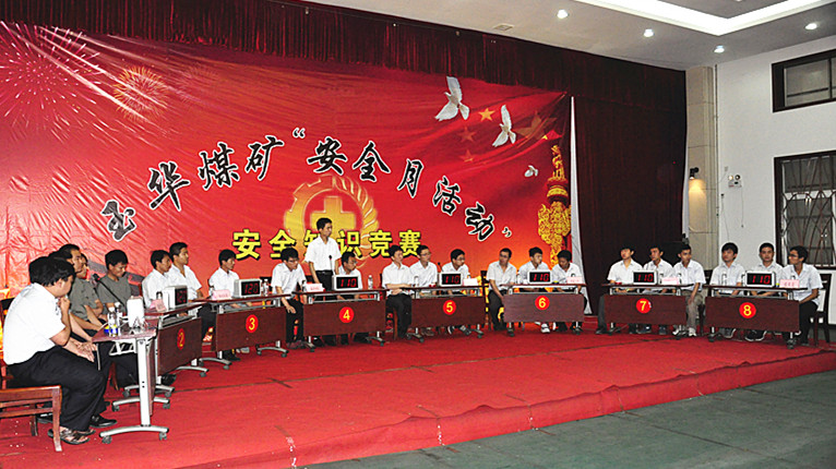 “安全第一,平安是福,安全生產(chǎn),幸福千家……”,活動開篇寄語道出玉華礦在安全管理中堅持“以人為本”,舉辦職工喜聞樂見、寓教于樂的“關愛生命關注安全”安全知識競賽等安全宣教活動,以此弘揚安全文化、普及安全知識,強化職工安全意識,以礦井安全生產(chǎn)確保萬家幸福團圓,促進礦井可持續(xù)發(fā)展的活動宗旨。職工活動中心內(nèi),在近500名“觀眾”的熱烈掌聲中,礦黨政領導作為本次競賽評委落座仲裁席,來自綜采隊、綜掘一隊、綜掘二隊、通滅區(qū)等八個單位的代表隊選手,依次踏進決賽場地,拉開了本次競賽帷幕。