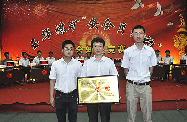 精彩節(jié)目過后,更為刺激緊張的第二輪搶答環(huán)節(jié)隨之到來,綜采隊的三名選手知識淵博且眼疾手快,連續(xù)搶得4次機會,每題必中,將得分累加到170分而搖搖領先。其他隊伍奮起直追,本輪過后,各支隊伍拉開了微弱的比分差距。要想摘得桂冠,第三輪風險題競答將是有所斬獲的最佳良機機遇與風險并存。機電車間此時得分位居中游,隊員在慎重思考一番后,毅然選擇50分值的風險題,“請詳述玉華礦紅線管理二十條內(nèi)容”,觀眾不禁為選手的大膽選擇捏了一把汗,只見車間二號選手沉穩(wěn)應答,一條條紅線管理條例脫口而出。關鍵時刻獲得50分,車間代表隊以180分瞬間獲取首位。而綜采隊更不甘示弱,同樣順利拿下50分,以220分再次反超穩(wěn)居頭名。冠軍之爭塵埃落定,機電車間、掘進四隊獲得本次競賽第三名,通滅區(qū)、救護中隊獲得第二名,綜采隊榮獲冠軍。