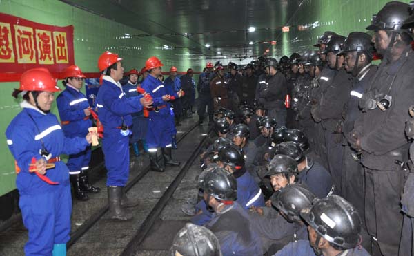 演出一開(kāi)場(chǎng),歌曲《好運(yùn)來(lái)》、《祖國(guó)贊美詩(shī)》就引來(lái)了職工們的熱烈掌聲;該礦勞資科科長(zhǎng)張社銀和他愛(ài)人合唱的《天邊的駱駝》將整場(chǎng)演出氣氛推向了巔峰,叫好聲、掌聲久久不能平息;群口快板《安全東坡竟風(fēng)流》在說(shuō)教聲中教育廣大職工生產(chǎn)不忘安全;礦工歌星楊國(guó)民一曲《火辣辣》將現(xiàn)場(chǎng)氣氛再次推向高潮,臺(tái)上臺(tái)下形成互動(dòng),演出節(jié)目一個(gè)比一個(gè)精彩,嘹亮、動(dòng)聽(tīng)的歌聲,歡快、悠揚(yáng)的樂(lè)曲把現(xiàn)場(chǎng)職工帶入了歡樂(lè)的海洋。讓每位職工深深感到自己在千尺井下辛勤工作的同時(shí),礦黨政關(guān)愛(ài)、家人的期盼每時(shí)每刻都在身邊,更使職工在愉快、歡樂(lè)的氛圍中接受了一次深刻的安全教育。綜采一隊(duì)職工李志民說(shuō):“演出太精彩了,感覺(jué)很溫暖,礦黨政把歡樂(lè)的歌聲,安全的囑托送到百米井下,為我們送來(lái)了祝福,我們非常感動(dòng),給我們一線工人增添了動(dòng)力。今后,我們一定會(huì)遵章作業(yè),時(shí)刻不忘安全生產(chǎn),更好的做好本職工作,為礦井解危渡困做出自己的貢獻(xiàn)?!?/p>
