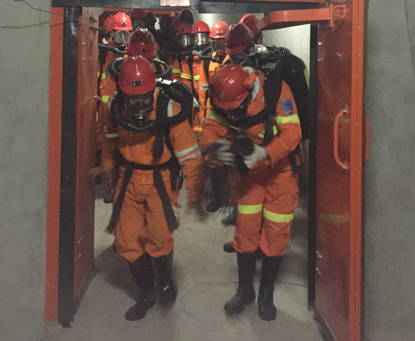 按照應(yīng)急演練預(yù)案設(shè)置,在基地演習(xí)巷道內(nèi)模擬某礦井102綜采工作面發(fā)生火災(zāi)事故,事故原因不詳,現(xiàn)有三人被困井下,請(qǐng)大隊(duì)救援。接報(bào)后,大隊(duì)立即啟動(dòng)礦山應(yīng)急預(yù)案,迅速集結(jié)應(yīng)急救援指揮部成員前往救援,在聞警集合、下井準(zhǔn)備、災(zāi)區(qū)偵察、搶救傷員、恢復(fù)通風(fēng)、搶救遇險(xiǎn)人員、搬運(yùn)遇難人員等一系列救援演練,整個(gè)演練用時(shí)2個(gè)半小時(shí)。共使用8種國(guó)投裝備,5種特種車輛、參演人員達(dá)到了90余人,先后處置了瓦斯超限、冒頂,受傷人員、急救蘇生、通訊系統(tǒng)損害等問(wèn)題。參演部門和人員密切配合,嚴(yán)格按照命令和方案執(zhí)行,較好的檢驗(yàn)了應(yīng)急裝備及國(guó)投應(yīng)急救援裝備操作使用的能力,起到了預(yù)期的目的,也暴露出了應(yīng)急管理及國(guó)投救援裝備及性能等方面存在的問(wèn)題和不足,這是我們以后不斷努力的方向。