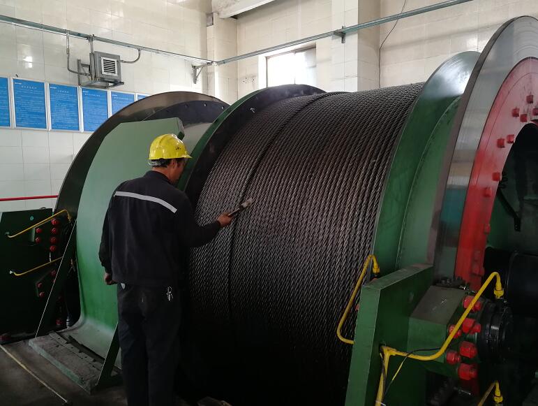 11日上午8:00,開始更換鋼絲繩。此時需要做好鉤頭放置標(biāo)記,記好深度指示器米數(shù),將舊鋼絲繩拉出,將新鋼絲繩纏繞到滾筒,恢復(fù)深度指示器離合,恢復(fù)數(shù)字編碼器,校正即可完成。施工期間,該項目部相關(guān)領(lǐng)導(dǎo)、部室負(fù)責(zé)人、區(qū)隊主要領(lǐng)導(dǎo)從鉤頭的制作,到鋼絲繩的收放、纏繞鋼絲繩,再到試驗,全程跟蹤現(xiàn)場施工,督促現(xiàn)場安全管理,現(xiàn)場指導(dǎo)解決更換過程中遇到的問題;施工人員每個環(huán)節(jié)協(xié)調(diào)作業(yè),密切配合,確保了整個施工的平穩(wěn)推進(jìn)。