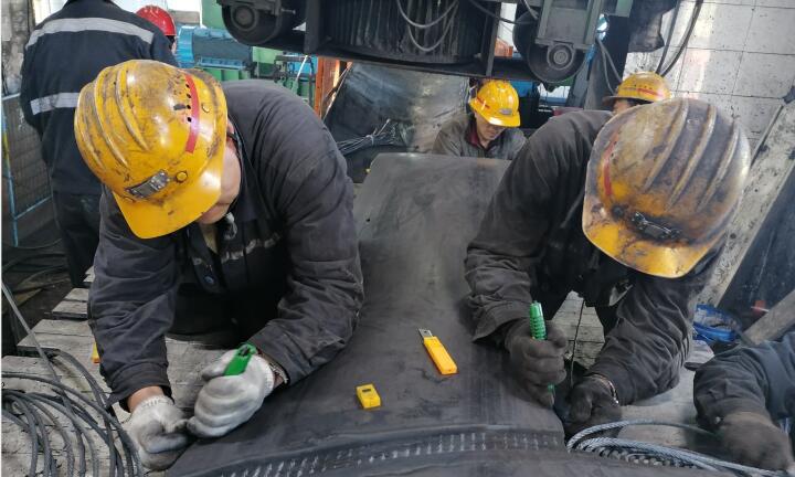 主井大帶皮帶全長(zhǎng)2210米,由于皮帶長(zhǎng)期運(yùn)行導(dǎo)致皮帶磨損較為嚴(yán)重,再加上皮帶背面出現(xiàn)多處傷口,給皮帶的安全運(yùn)行帶來(lái)隱患,此次大帶硫化工作由項(xiàng)目部運(yùn)轉(zhuǎn)隊(duì)組織施工,檢修期間,該隊(duì)在主井大帶機(jī)頭位置用鋼梁搭建硫化平臺(tái),通過(guò)操作臺(tái)將待檢修部位皮帶運(yùn)行至硫化平臺(tái)處,割帶剝離皮帶鋼絲繩,并對(duì)其進(jìn)行清洗和抹膠,再鋪上新膠固定打壓碾平,最后經(jīng)人力將硫化好的皮帶拉運(yùn)至井底190米處進(jìn)行合帶對(duì)接并進(jìn)行調(diào)試,完成大帶硫化工序。期間,該隊(duì)共對(duì)主井大帶硫化三處皮帶接頭,更換200米膠帶,保證了設(shè)備安全運(yùn)行。
