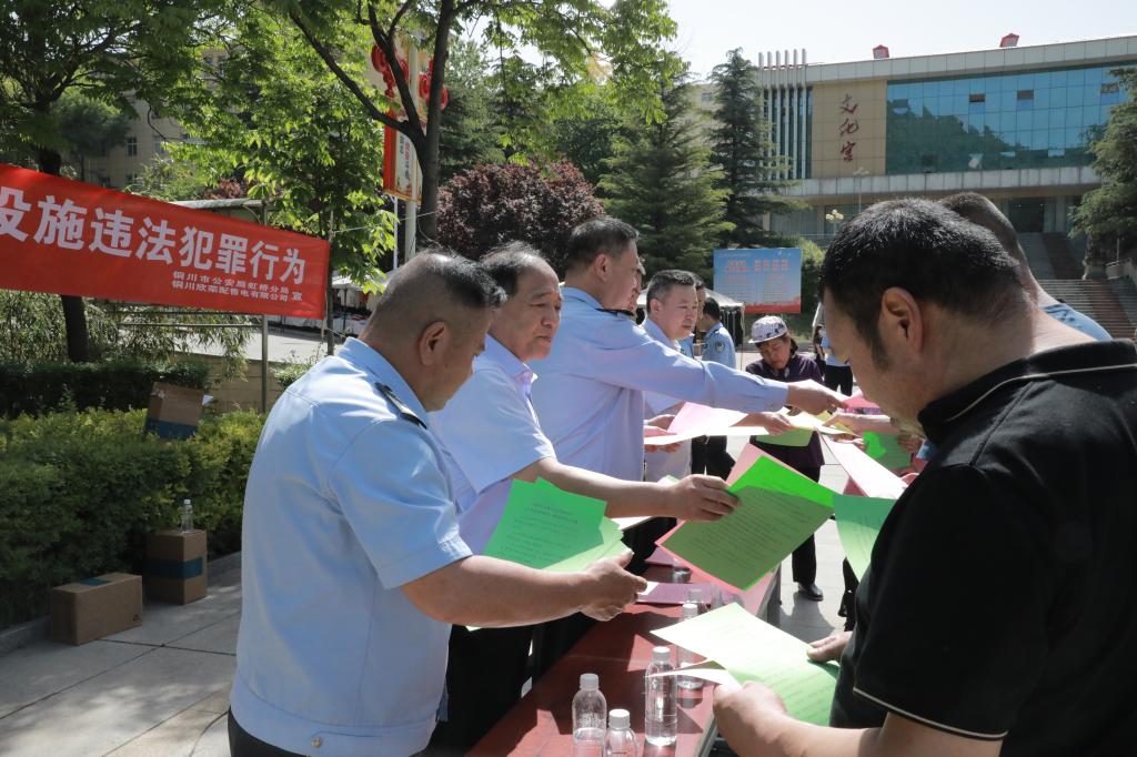 為切實做好電力設(shè)施安全保護工作,保障礦區(qū)電網(wǎng)安全穩(wěn)定運行,5月17日,欣榮配售電公司聯(lián)合銅川市公安局虹橋分局在下石節(jié)開展了一場以“嚴(yán)厲打擊盜竊破壞電力設(shè)施違法犯罪行為”為主題的宣傳活動。欣榮公司領(lǐng)導(dǎo)班子成員、各電管站職工干部與虹橋分局局長、各民警輔警,共計30余人參加此次活動。