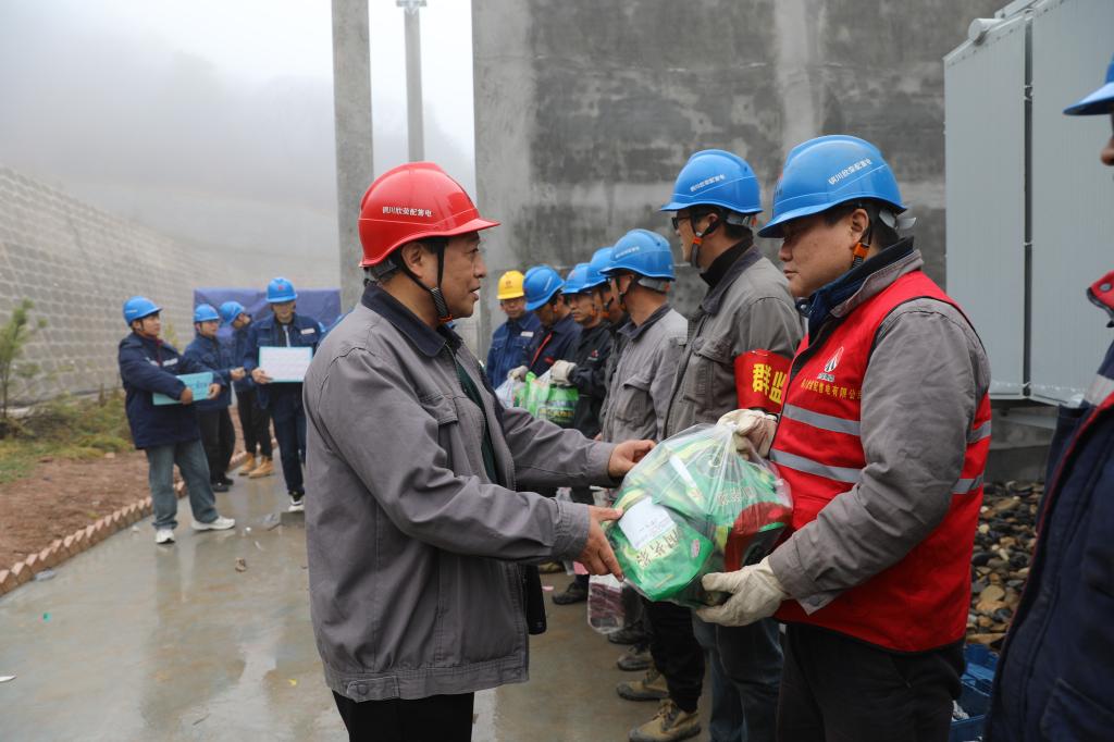 臨近年末,該公司在柴家溝井電纜鋪設(shè)、玉華后溝風(fēng)井變電站新建、玉華光伏項目建設(shè)多項重點工程上面臨同時推進項目工期緊,天氣變冷施工難度加大的情況,為趕進度、保質(zhì)量,公司施工人員已連續(xù)多日奮戰(zhàn)在施工一線。公司工會及時關(guān)注到這一情況,為施工人員精心準(zhǔn)備了慰問品,并一一送到施工人員手中。一聲聲親切的問候,一句句貼心的話語,讓施工人員們倍感溫暖。