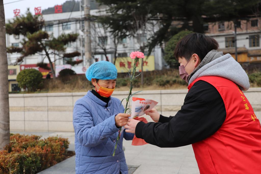 活動當天,團員青年們早早來到火車站,身著整齊的志愿者服裝,手持宣傳資料和鮮花,精神抖擻地投入到宣傳工作中。他們穿梭在銅川火車站的站前廣場,向來往行人及旅客們發(fā)放文明出行倡議書及鐵路沿線安全宣傳單,并耐心講解鐵路沿線安全知識,如禁止在鐵路周邊放置障礙物、愛護公共環(huán)境、美化環(huán)境衛(wèi)生等內容。活動過程中,每當遞出宣傳單,便會送上一支康乃馨,手中的康乃馨傳遞著溫暖,讓宣傳氛圍更加溫馨。針對一些小朋友和老年人,志愿者們更是用通俗易懂的語言和生動形象的案例,進行詳細的安全科普,讓大家深刻認識到保障鐵路安全及愛護公共環(huán)境的重要性。