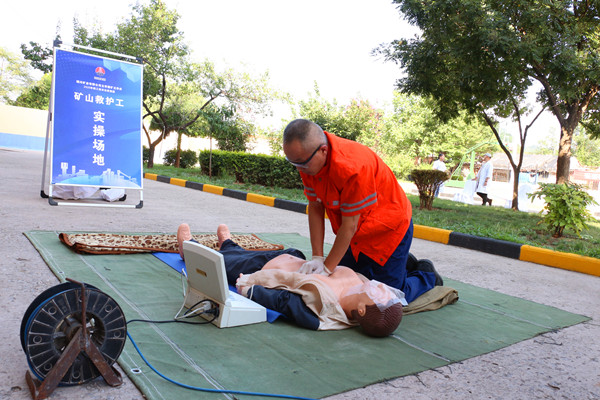 捋順管路、固定氧氣瓶、轉(zhuǎn)動(dòng)調(diào)節(jié)器……在礦山救護(hù)工競賽現(xiàn)場,每一次“滴、滴、滴”的計(jì)時(shí)聲音中,救護(hù)隊(duì)員與時(shí)間競速,快速準(zhǔn)確完成氧氣呼吸器操作及故障處置,利用模擬人對救護(hù)工對CPR操作的關(guān)鍵要點(diǎn),包括按壓位置、深度、頻率的掌握情況進(jìn)行考核,整套動(dòng)動(dòng)完成拍下計(jì)時(shí)結(jié)束按鈕,扣人心弦,緊張激烈。