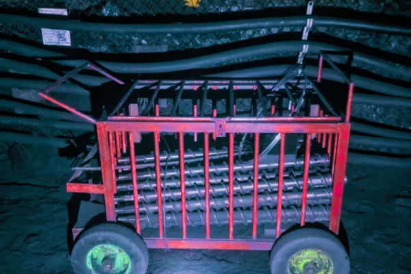 此次采用“載物單元+應急單元”分區(qū)設計,實現(xiàn)“一車雙能”,載物區(qū)精準匹配礦井氣動架柱式鉆機專用錨桿尺寸,從根源上替代人工搬運。同時加裝防護欄,杜絕運輸過程中錨桿滾動碰撞引發(fā)的設備損傷與人員安全事故。應急單元則創(chuàng)新采用“滅火器隨人同行”設計,車架側面專屬定制2個8kg干粉滅火器固定支架,確保應急設備與作業(yè)人員“零距離”相伴,打破傳統(tǒng)固定存放的局限。此外,可在≤15度的巷道斜坡上平穩(wěn)推行,單人即可輕松操作。