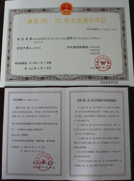 近年來,國家能源局對電力資質(zhì)的頒發(fā)批準程序進行了嚴格規(guī)定,對之前有資質(zhì)6年到期換證續(xù)期的單位,全部按照新申請單位的程序辦理。并派出現(xiàn)場考查組深入到申報單位,對企業(yè)管理制度、年度財務(wù)報表、職工工資臺帳、高壓電氣試驗設(shè)備、儀器、儀表、場地、專用車輛、施工專業(yè)技術(shù)人員資格證書等詳細情況,進行實地考查審核。供用電分公司結(jié)合企業(yè)實際,向國家能源局西北監(jiān)管局提出申請,組織完成了電力企業(yè)資料申報、資料修正、正式受理、現(xiàn)場考查審核、公示、批準等六項工作,經(jīng)嚴格審核考查程序后,再次獲得國家能源局西北監(jiān)管局頒發(fā)的承裝(修、試)電力設(shè)施四級資質(zhì)證書。