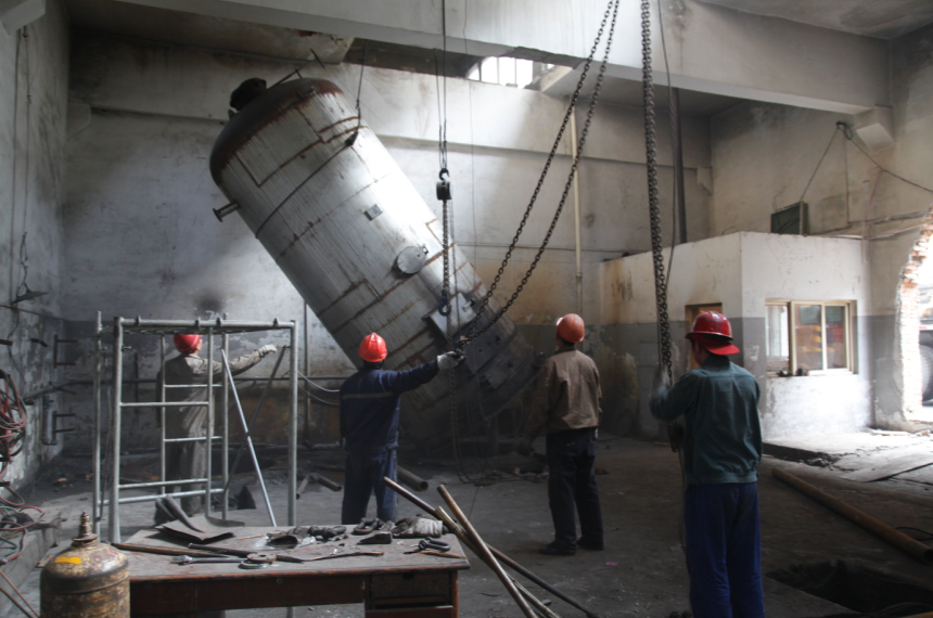 鍋爐拆除的工序繁瑣復(fù)雜、高空起吊安全要求很高。施工隊(duì)伍轉(zhuǎn)戰(zhàn)各工地,不但經(jīng)常受運(yùn)輸?shù)缆藩M窄且轉(zhuǎn)彎過(guò)急,汽車吊及大型運(yùn)輸車輛不能順暢通行的限制,還要克服拆除嚴(yán)重腐蝕煙囪及鍋爐拆解吊運(yùn)不便的挑戰(zhàn),面對(duì)這些困難,施工通常要經(jīng)過(guò)多次推演,在確保各工序銜接緊密、環(huán)環(huán)相扣,拆除起吊過(guò)程高效協(xié)調(diào)、萬(wàn)無(wú)一失的情況下,才慎重敲定施工方案。每當(dāng)一臺(tái)臺(tái)經(jīng)過(guò)施工人員緊張持續(xù)勞作、用心保護(hù),最大限度地保證鍋爐及附屬設(shè)備完好,還能經(jīng)回收改造再利用的鍋爐順利拆除吊運(yùn)后,施工人員這才終于放下同樣懸吊的心,露出了欣慰的笑容。