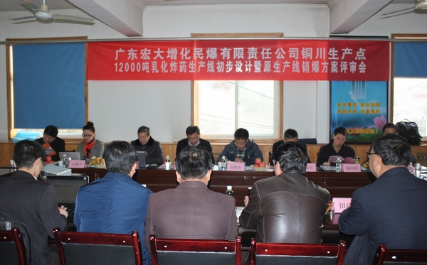12月13--14日,由陜西省國防科工辦和廣東省經(jīng)信委聯(lián)合組織召開的銅川宏大民爆有限責(zé)任公司乳化炸藥生產(chǎn)線技術(shù)改造項目初步設(shè)計和原生產(chǎn)線銷爆方案評審會在銅川市舉行。