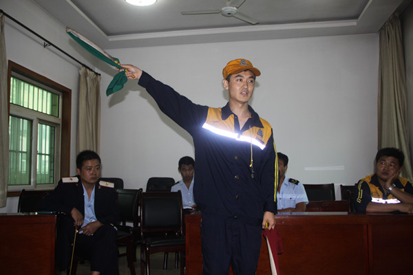 在30分鐘的時(shí)間里,每個(gè)調(diào)車員手持晝間紅、綠信號(hào)旗、夜間信號(hào)燈還有口哨,人人顯示正確無(wú)誤,個(gè)個(gè)吐字表述清晰,鼓掌聲時(shí)時(shí)從學(xué)習(xí)室里響起,讓選手們興奮了許多。