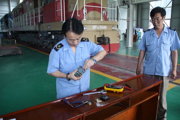 在DF7C5808內(nèi)燃機車前,一場假設“故障點”大檢查拉開帷幕。這項比賽在內(nèi)燃機車上設立了10個假設“故障點”,要求選手在20分鐘內(nèi)完成。