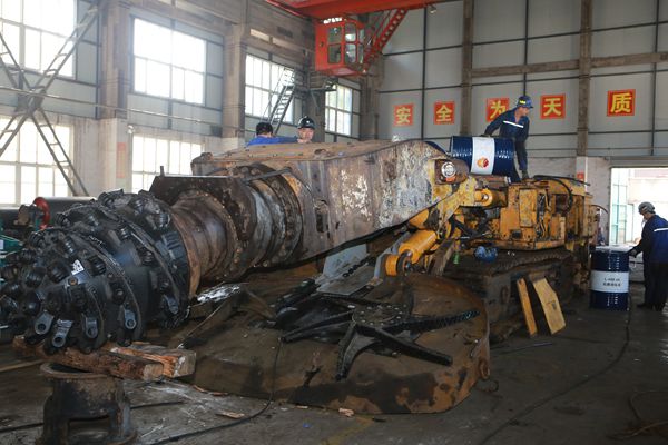 該礦200型綜掘機(jī)在投入井下巷道掘進(jìn)施工以來,由于設(shè)備長期使用,各個部件和液壓傳動系統(tǒng)都出現(xiàn)了不同程度的磨損。為了不影響后續(xù)井下223運(yùn)順巷道掘進(jìn)工程進(jìn)度,該礦及時安排綜掘一隊技術(shù)人員自主對綜掘設(shè)備進(jìn)行大修保養(yǎng)。接到任務(wù)后,綜掘一隊周密部署,制定細(xì)致的施工作業(yè)方案嚴(yán)格落實(shí)到位。該隊隊長賈剛、黨支部書記居林華深入現(xiàn)場跟班把關(guān)安全,指導(dǎo)作業(yè)。該隊技術(shù)副隊長賈照仁、維修班班長孫連玉帶領(lǐng)工友們克服設(shè)備沉重、工作量大等難題,集思廣益展開技術(shù)攻關(guān)。為確保高質(zhì)量、快速度的完成了維修任務(wù),大家苦干加巧干,加班加點(diǎn)堅守在檢修現(xiàn)場,悉心排除問題隱患。在兄弟單位的密切配合下,已順利完成了設(shè)備拆卸、清理、潤滑、更換油箱、主泵、液壓傳動系統(tǒng)等核心工作程序。廣大干部職工積極發(fā)揮聰明才智,利用廢舊材料自制加工機(jī)頭噴霧罩、操作臺顯示器固定裝置等部件,為企業(yè)節(jié)約了大量維修成本。
