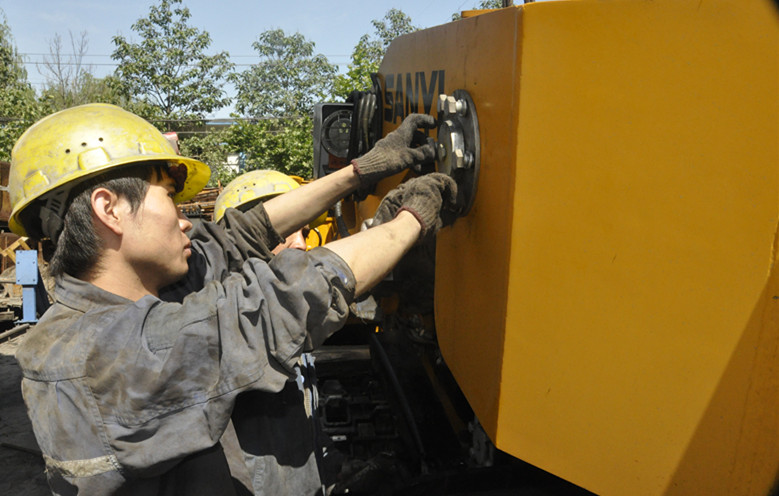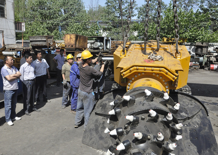 為進一步提升2405高抽巷推進進度,有效緩解礦井采掘接續(xù)緊張局面,在礦黨政領(lǐng)導(dǎo)周密組織協(xié)調(diào)下,一臺EBZ-160型綜掘機完成地面組裝調(diào)試后,即將投入2405(3#)高抽巷掘進生產(chǎn)使用。6月10日至11日,在分管機電礦級領(lǐng)導(dǎo)的現(xiàn)場指揮下,動力、生產(chǎn)等科室與掘四隊、機電車間組織技術(shù)人員,頂烈日揮汗如雨的進行著綜掘機地面組裝工作。經(jīng)過30多個小時的奮戰(zhàn),11日早10時,綜掘機完成初步組裝,經(jīng)過檢查確認安全后,隨著一聲試運行的令下,截割頭與鏟板星輪、刮板輸送機實現(xiàn)順暢運轉(zhuǎn)。隨后,按照試運行步驟,綜掘機在場地內(nèi)行走自如,順利完成了試運行各項檢測工作。