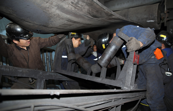 科學(xué)技術(shù)來(lái)不得一絲馬虎。副礦長(zhǎng)劉劍帶領(lǐng)機(jī)電、動(dòng)力骨干,圍著主斜井系統(tǒng),對(duì)照資料數(shù)據(jù),認(rèn)真測(cè)量、勘察、商議方案,再次提交領(lǐng)導(dǎo)小組決議。經(jīng)過(guò)科學(xué)論證、集體研究,報(bào)請(qǐng)公司對(duì)主井1200米膠帶進(jìn)行更換。然而,井筒傾角大、安裝長(zhǎng)度長(zhǎng)、工程費(fèi)用高,如何既保證工程進(jìn)度又降低費(fèi)用、節(jié)約成本?成為新的問(wèn)題?!皼](méi)有壓力就沒(méi)有動(dòng)力,總要有第一個(gè)吃螃蟹的人”。該礦頂住疑問(wèn)與壓力,冷靜分析實(shí)力所在,當(dāng)機(jī)立斷,挑兵選將,成立了由機(jī)電車(chē)間負(fù)責(zé),兩個(gè)掘進(jìn)隊(duì)增援的安裝隊(duì)伍,敲定施工方案。