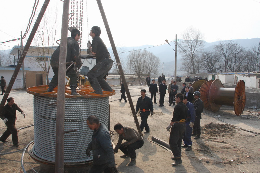 承擔(dān)著銅川礦業(yè)公司下石節(jié)煤礦原煤運(yùn)輸?shù)拇笃?#鋼絲繩在長期的運(yùn)行中磨損嚴(yán)重,給原煤生產(chǎn)運(yùn)輸工作帶來安全隱患。3月31日至4月1日,該礦迅速組織和進(jìn)行了緊張地更換工作,鋼絲繩更換工作原計劃礦井停產(chǎn)32個小時內(nèi)完成,實(shí)際用時24小時,提前8個小時安全順利完成,為礦井原煤生產(chǎn)正常進(jìn)行爭取了時間。
