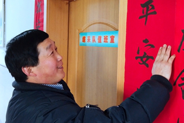 該礦綜采隊(duì)工長(zhǎng)顏太明在煤礦一線(xiàn)奮戰(zhàn)了近三十年,他深知安全對(duì)于企業(yè)和職工的重要意義。臘月二十八這天,他親手為區(qū)隊(duì)值班室貼上了安全主題的春聯(lián),在他心中平安就是最大幸福。希望在新的一年里,能繼續(xù)帶領(lǐng)著礦工兄弟們與企業(yè)同舟共濟(jì),以精益求精的工作態(tài)度搞好礦井安全生產(chǎn),全力以赴保障礦工兄弟的生命安全和企業(yè)的安全發(fā)展。