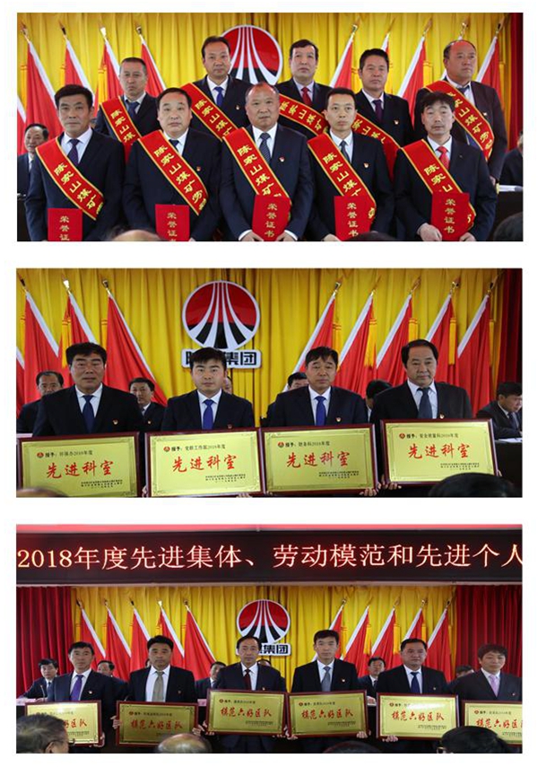 該礦黨委負(fù)責(zé)人、礦長王體文在會上講話時指出,2018年,陳家山礦在公司黨政的堅強領(lǐng)導(dǎo)下,各級組織和廣大黨員干部職工堅持以黨的十九大精神為指導(dǎo),深化黨建工作創(chuàng)新,以“四零”目標(biāo)管理為統(tǒng)領(lǐng),緊扣追趕超越、提質(zhì)增效中心工作,團結(jié)進取、開拓創(chuàng)新,整體工作穩(wěn)步推進。概括起來就是“四新、兩高、一多、一提升”:“四新”:一是圓滿完成礦業(yè)公司規(guī)定的目標(biāo)任務(wù),煤炭產(chǎn)銷量取得新突破;二是提前實現(xiàn)了三年“治虧創(chuàng)效”目標(biāo),完成了礦業(yè)公司考核利潤,經(jīng)營管理工作再創(chuàng)新佳績;三是率先在銅川礦區(qū)實施了矸石山三年水保綜合治理、儲煤場封閉、燃煤鍋爐“煤改氣”、污水處理廠設(shè)備更新改造,環(huán)保工作邁上了新臺階;四是著力推行了“黨建+5+x”工作模式,開展了黨建特色品牌創(chuàng)建,黨建引領(lǐng)力進一步增強,黨建創(chuàng)新有了新亮點。“兩高”:一是積極開展掘進競賽活動,強化掘進日常管理,嚴(yán)格按照中腰線組織施工,全年掘進進尺7111米。二是補繳了2018年企業(yè)年金及拖欠的住房公積金,為農(nóng)合工繳納了住房公積金,全年人均工資同比去年提高,職工滿意度高?!耙欢唷保?2018年,我礦先后被陜西省煤炭生產(chǎn)安全監(jiān)督管理局、集團公司、礦業(yè)公司評為先進集體、先進單位等多項榮譽?!耙惶嵘保簩嵤┝恕八膯T兩長”“逢檢必考”“雙向考核”安全管理機制,開展了安全警示教育、安全生產(chǎn)月等一系列行之有效的安全活動,礦井整體安全管理能力持續(xù)提升。希望受到表彰的先進集體和先進個人要切實從以下七個方面發(fā)揮先鋒模范帶頭作用,影響帶動廣大職工積極投身到各項工作中。一是提高素質(zhì),爭做學(xué)習(xí)表率;二是嚴(yán)守紅線,爭做安全衛(wèi)士;三是立足本職,爭做生產(chǎn)標(biāo)兵;四是嚴(yán)抓細(xì)管,爭做追趕超越先鋒;五是創(chuàng)新思路,爭做新時代黨建工作骨干;六是認(rèn)真履職,爭做和諧美麗礦區(qū)建設(shè)典范;七是實干作為,爭做“轉(zhuǎn)作風(fēng)”的模范。