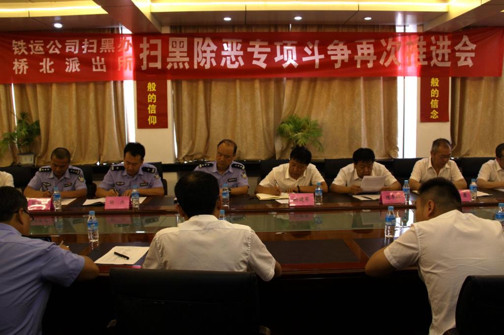 8月27日上午,鐵運(yùn)分公司與橋北派出所聯(lián)合開(kāi)展掃黑除惡活動(dòng),圍繞“掃干凈、除徹底”目標(biāo),不斷提高政治站位,加強(qiáng)政企合作,切實(shí)保護(hù)全體職工的合法權(quán)益,維護(hù)社會(huì)穩(wěn)定。橋北派出所領(lǐng)導(dǎo)與該分公司黨政領(lǐng)導(dǎo)干部和職工共計(jì)50余人參加。