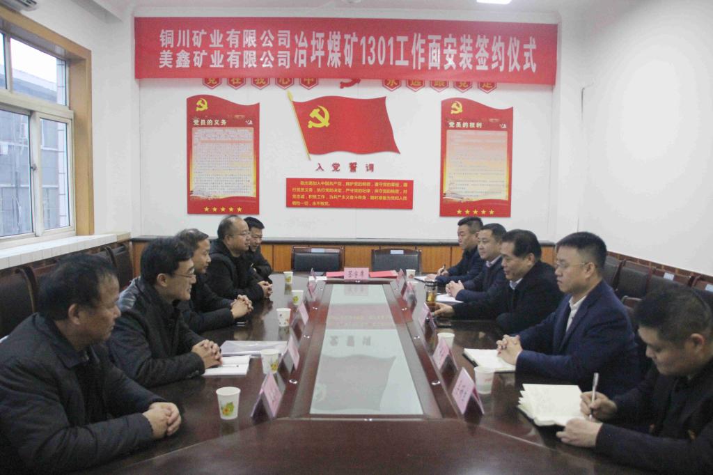 近日,公司與美鑫礦業(yè)冶坪煤礦1301工作面安裝簽約儀式在煤礦管理公司黨政會(huì)議室舉行。陜西美鑫產(chǎn)業(yè)投資有限公司常務(wù)副總經(jīng)理、美鑫礦業(yè)公司董事長寧文衛(wèi)、以及美鑫礦業(yè)、煤礦管理公司雙方分管業(yè)務(wù)領(lǐng)導(dǎo)同志參加簽約儀式。公司副總工程師、煤礦管理公司黨委書記、董事長李福錦受銅川礦業(yè)公司委托與美鑫礦業(yè)公司總經(jīng)理郭百強(qiáng)在與會(huì)人員的共同見證下簽署了《1301工作面安裝工程施工協(xié)議》。